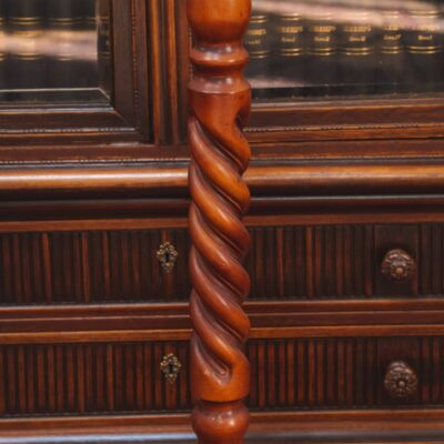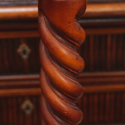 Парные бра выполнены из бронзы в классическом стиле с элементами барокко. Каждое бра имеет две изогнутые руки, которые поддерживают свечевидные патроны, стилизованные под капли воска, что создаёт иллюзию настоящих свечей. Декоративная основа украшена сложным рельефным орнаментом, включающим растительные мотивы и центральный элемент в виде плетёного узора. Основа бра оформлена фигурным навершием и аккуратным низом, который гармонично завершает композицию. Функциональность бра заключается в их способности служить источником мягкого, рассеянного света, создавая атмосферу уюта и элегантности в помещении. Электрические лампы оформлены в виде стилизованных свечей с «подтеками воска», что придаёт изделиям винтажный шарм. Такие бра идеально подойдут для интерьеров в классическом или барочном стиле, дополняя обстановку роскошными деталями и добавляя освещения в комнату.