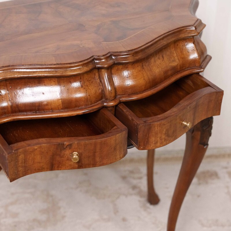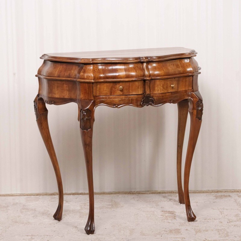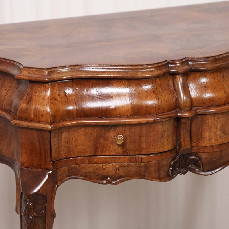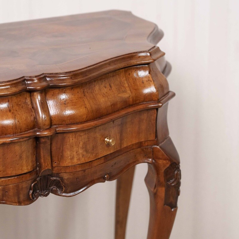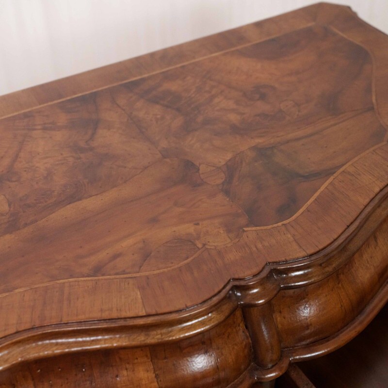 Декор: Деликатная резьба или накладки (вероятно, из позолоченной бронзы) украшают верхнюю часть ножек и фасад ящиков, подчеркивая их роскошный статус.