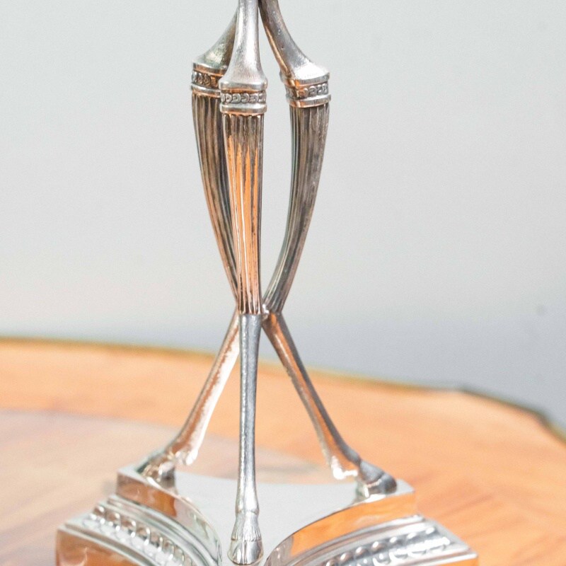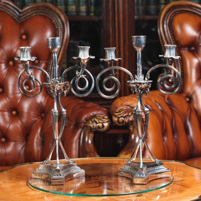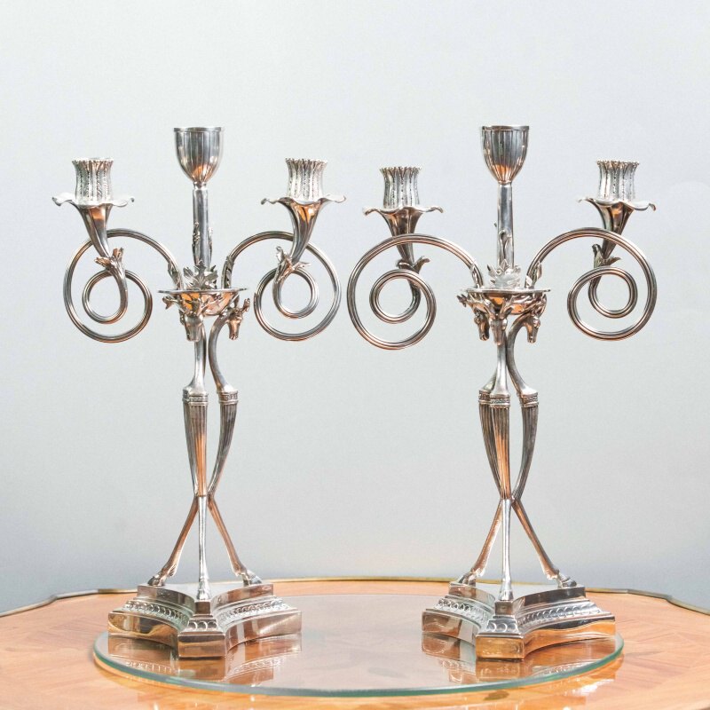 Элегантная пара серебряных канделябров с клеймами Королевства Сицилия относится к I трети XIX века — периоду, когда декоративное искусство объединяло черты неоклассики и раннего историзма.