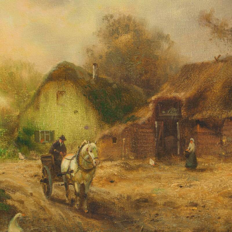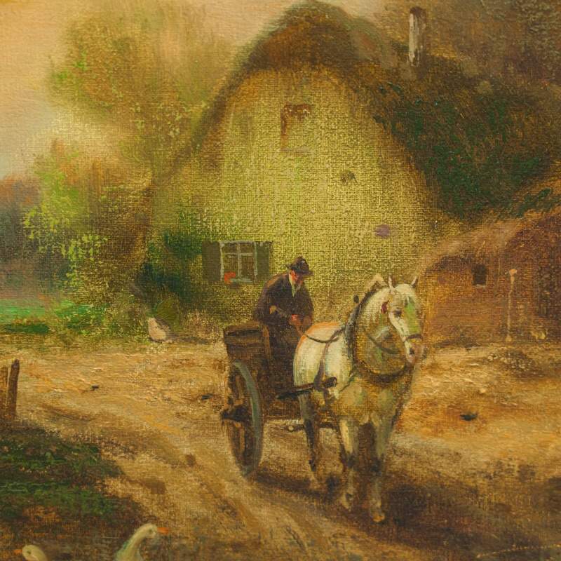 Gunter Konig учился у художников Munthe, Liebermann, Monet und Otto Modersohn. Пейзаж успокаивает, вносит душевную гармонию в нашу жизнь, наполняет теплыми чувствами любви к природе и самой деревне. Такой пейзаж отображает особый стиль жизни и быта людей, это-гармония природы и человека, а маленькие домики привлекают своей простотой и обыденностью. Сельский пейзаж позволяет расслабиться и помечтать.