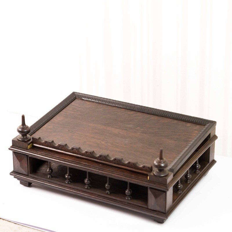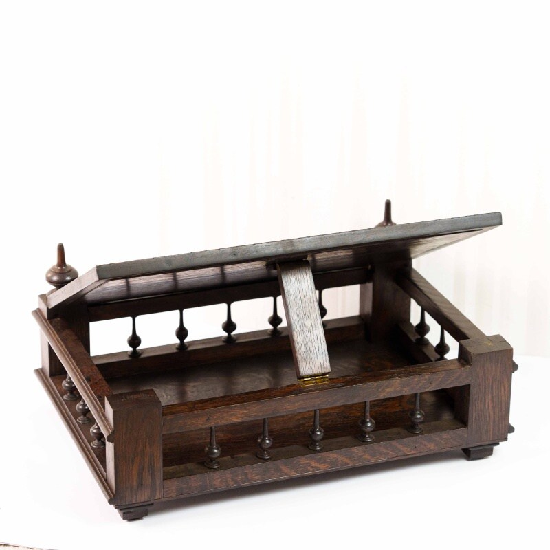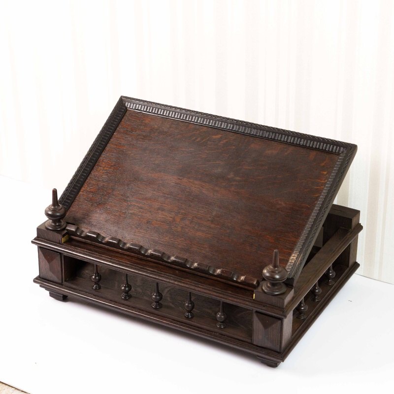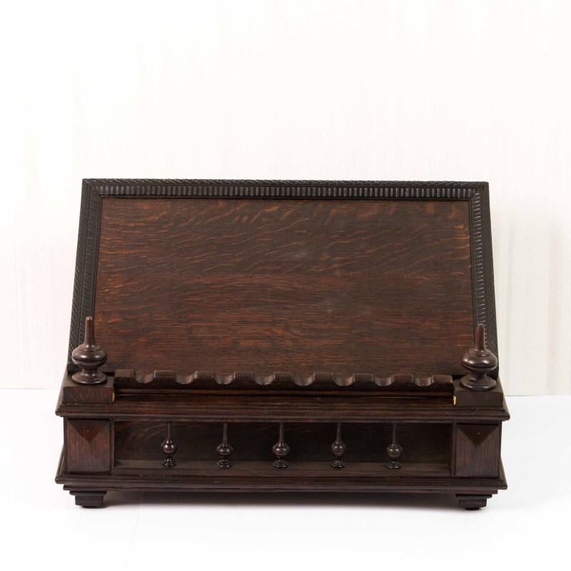 Перед вами изящная антикварная подставка для книги, исполненная с тонким чувством меры и благородной простоты.