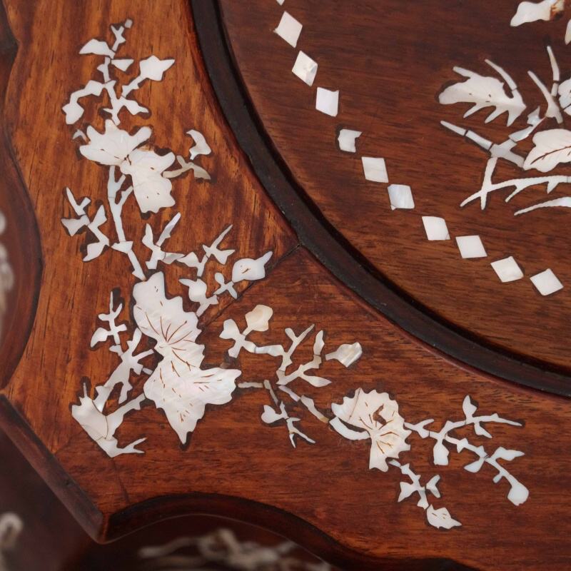 Материал Дерево, ручная резьба, инкрустация перламутром.