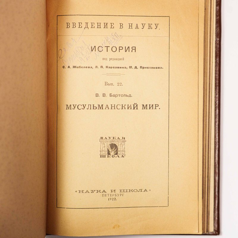 Бартольд В. В. «Мусульманский мир». Петербург, издательство «Наука и школа», 1922 г. Фундаментальный труд «патриарха» российского востоковеда академика В.В. Бартольда. Книга дает глубокий обзор возникновения и развития исламской цивилизации, её культуры и влияния на мировую историю.
