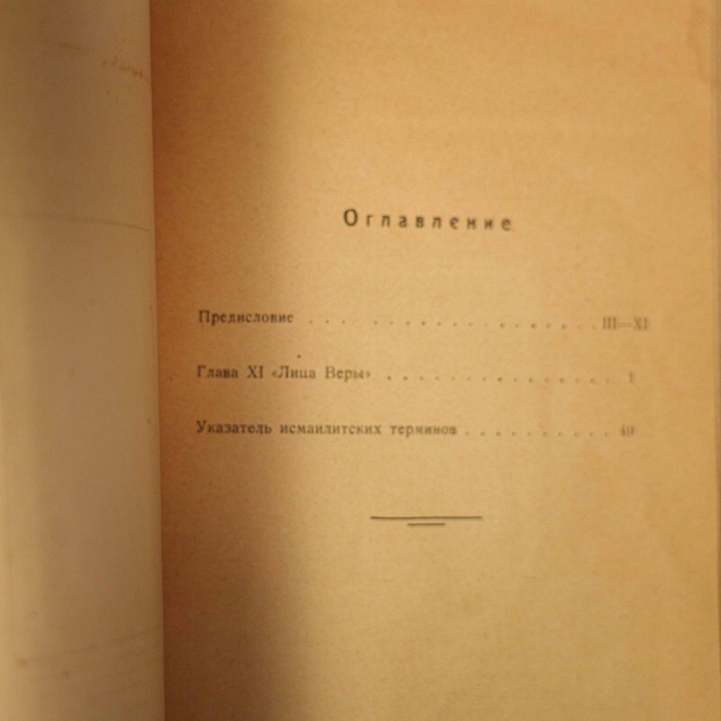 Проф. Семенов А. А. «К догматике памирского исмаилизма».Ташкент, издание «Общества для изучения Таджикистана и иранских народностей за его пределами», 1926 г. Чрезвычайно редкое издание. Работа напечатана в Ташкенте ограниченным тиражом (ориентировочно 500 экз.). Александр Александрович Семенов — крупнейший специалист по Средней Азии. В данной работе он представляет перевод и уникальный анализ XI главы «Лица Веры» великого мыслителя Насира-и-Хосрова.