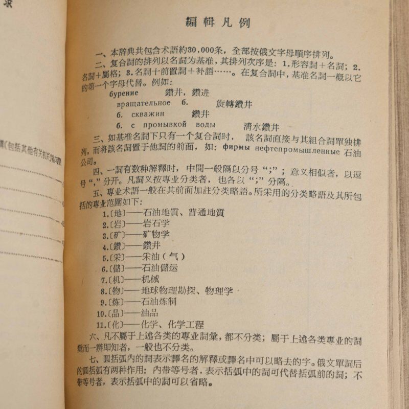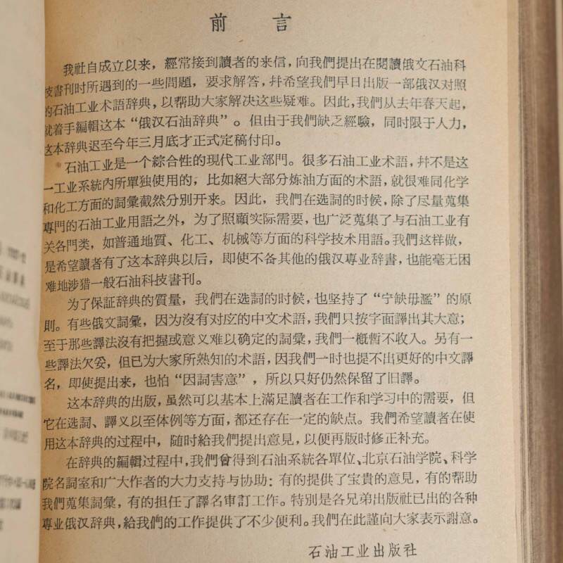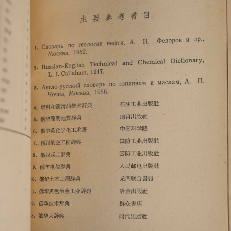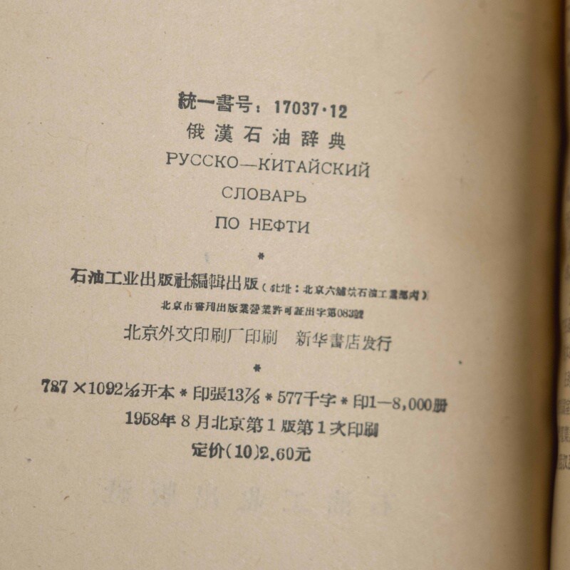 В период 1950-х годов между Советским Союзом и Китайской Народной Республикой активно развивались экономические, научные и технические связи, в том числе в области нефтяной промышленности. Для обмена опытом, обучения китайских специалистов и перевода технической документации требовались специализированные словари, включая отраслевые, такие как нефтяные. В Пекине в этот период активно работали издательства, выпускавшие книги, учебники и словари на иностранных языках, включая русский.
