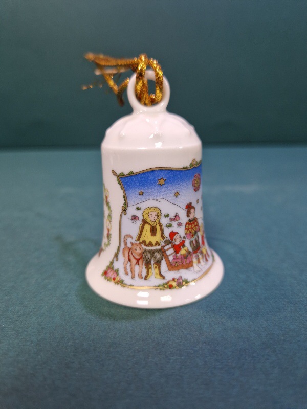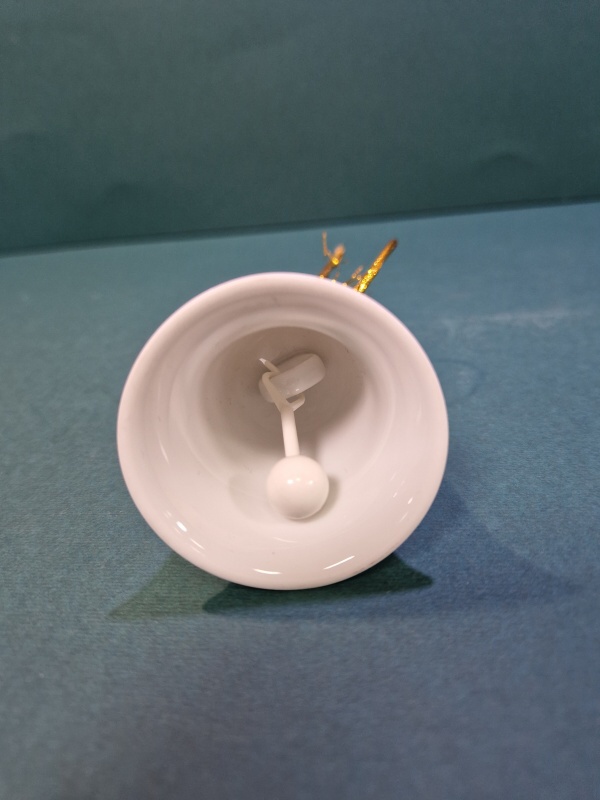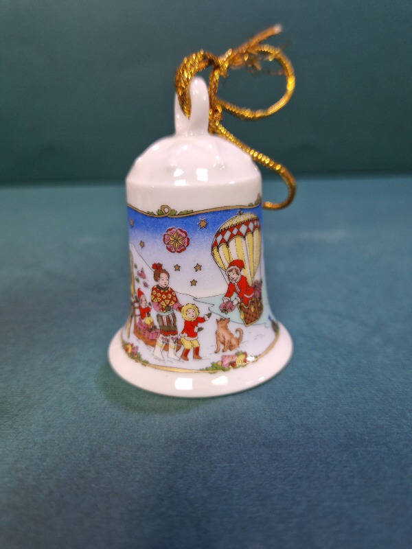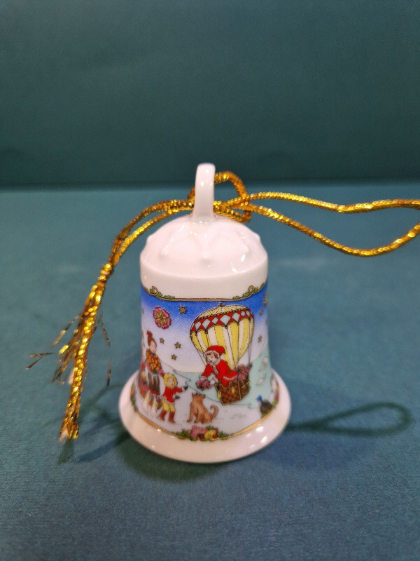 Внутри установлен фарфоровый язычок, создающий мягкий, чистый звон. Колокольчик относится к знаменитой серии Weihnachtsglocke и представляет ценность для коллекционеров рождественских серий Hutschenreuther.