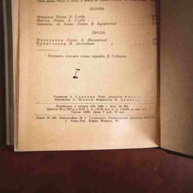 Сборник избранных сочинений великого казахского поэта, мыслителя, просветителя, композитора и основоположника казахской письменной литературы – Абая (Ибрагима) Кунанбаева (1845-1904 гг.). Данный сборник состоящий из переведенных на русский язык произведений великого поэта – Абая, был издан в Казахском Государственном издательстве художественной литературы в Алма — Аты (Алматы), в 1958 году.