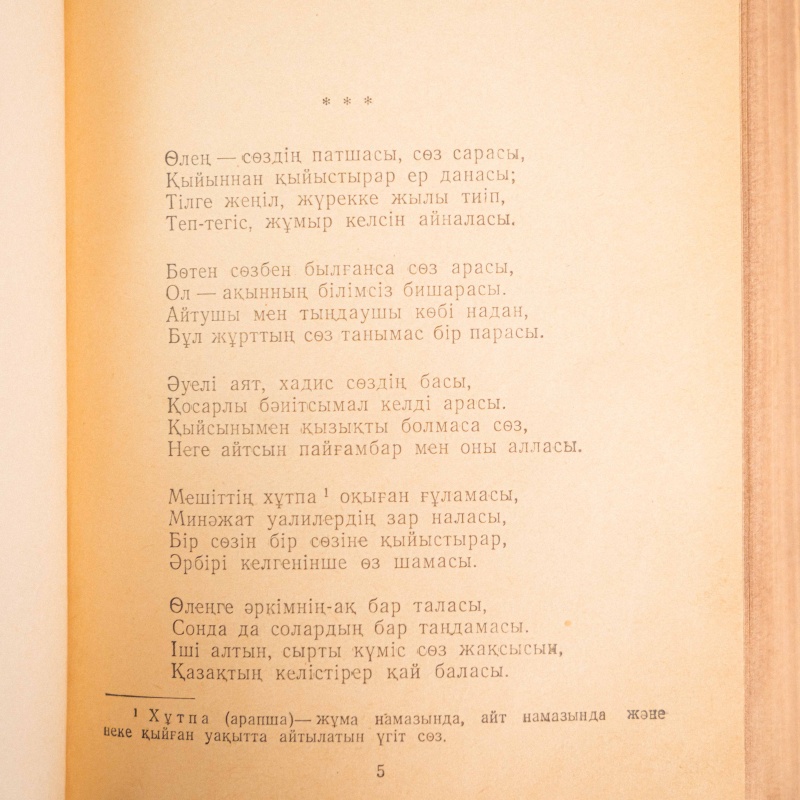 Абай (Ибрагим) Кунанбаев (1845-1904 гг.) – великий казахский поэт, мыслитель, который оказал большое влияние на зарождавшуюся казахскую национальную интеллигенцию конца XIX − начала XX веков. Так, руководители движения Алаш-Орда воспринимали Абая, как своего духовного предшественника, и даже духовного вождя возрождения казахской нации. Наследие Абая имеет очень важную роль в Истрии казахского народа, отражает весь быт, образ и жизнь народа.