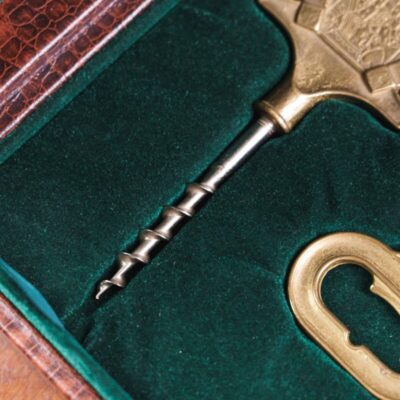 Верхняя часть секретера выполнена в виде откидной крышки с замочной скважиной; при открытии она превращается в письменную поверхность, а внутри скрыты небольшие ящички или отделения для хранения документов и канцелярии. Под крышкой расположены два просторных выдвижных ящика с аккуратными круглыми ручками, также украшенными растительными мотивами. Нижняя часть фасада и боковые панели продолжают орнаментальную линию, связывая композицию в единое художественное целое. Секретер стоит на изогнутых, словно кабриольных ножках, которые подчёркивают изящество формы и соответствуют эстетике итальянского рококо и позднего барокко.