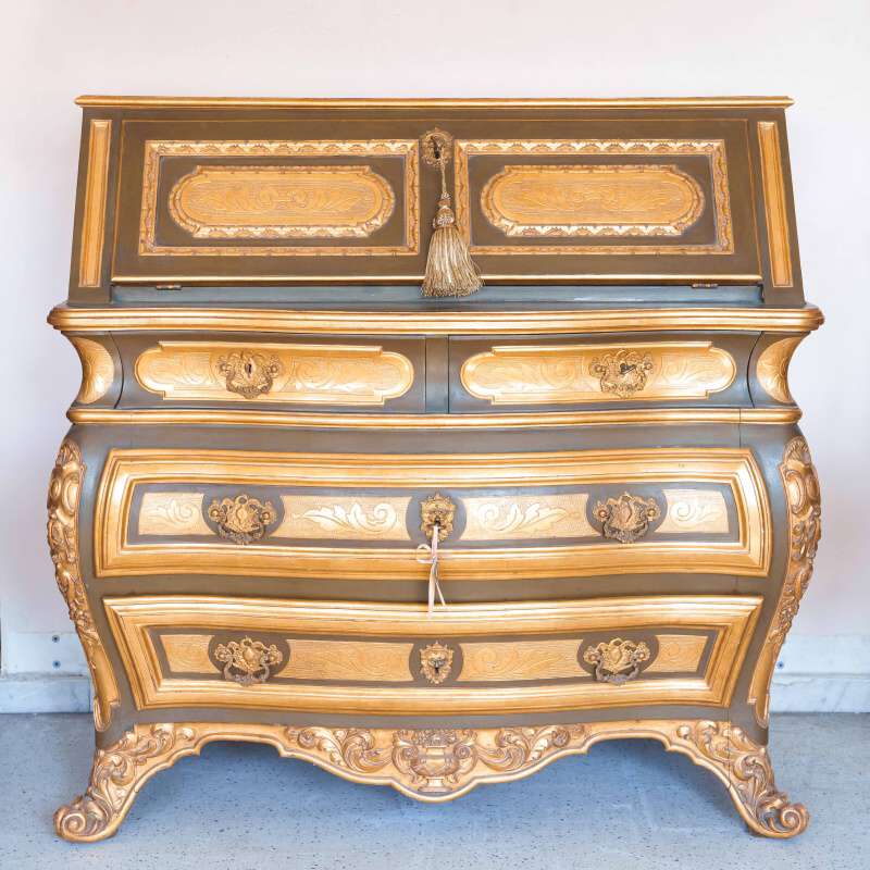 Этот секретер — не просто мебель, а настоящий художественный объект, способный стать центральным акцентом интерьера и внести в пространство атмосферу дворцовой элегантности и утончённого вкуса.
