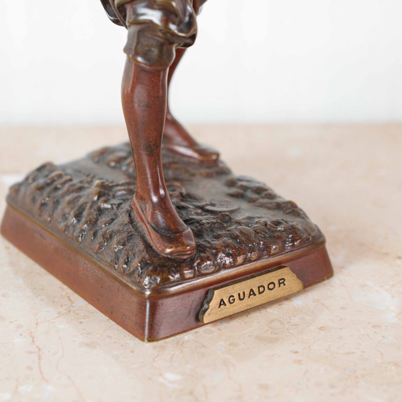 Луи Огюст Иолин, ученик Антуана-Луи Бари, принадлежал к мастерам, которые умели соединять академическую точность с наблюдательностью и интересом к повседневной жизни. В его работах чувствуется уважение к простому человеку и его труду. Глубокая бронзовая патина подчеркивает рельеф и игру света, добавляя скульптуре выразительности. «Aguador» воспринимается не просто как жанровая сцена, а как образ силы, выносливости и достоинства — качеств, которые остаются актуальными вне времени.