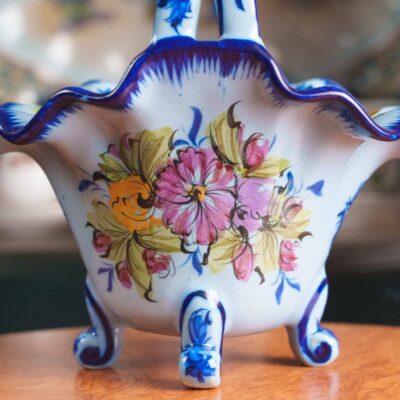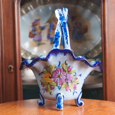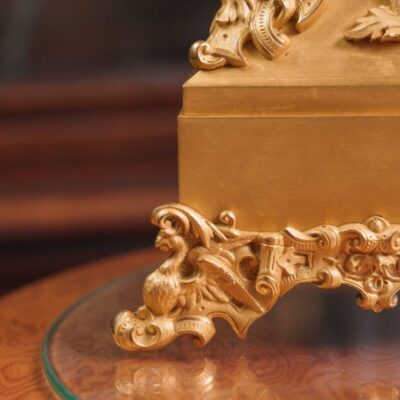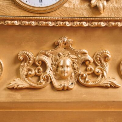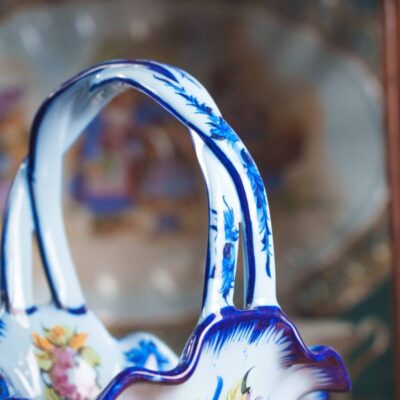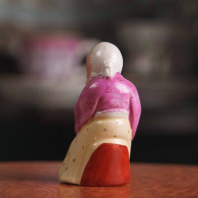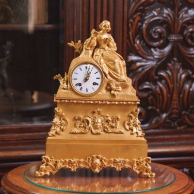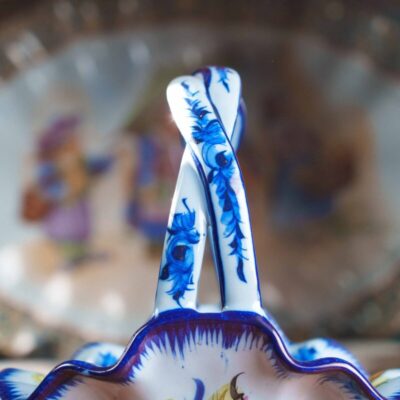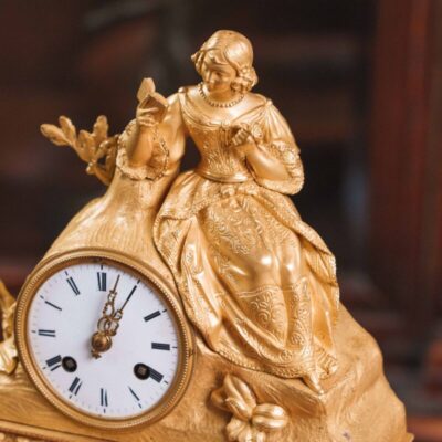 Скульптурная композиция в виде молодой влюбленной пары, едущей на лошади в специальном кресле для двоих. Хорошо проработаны мелкие детали внешности и одежды героев данной композиции. На постаменте имеется фирменная марка мануфактуры Шайбе-Альсбах – крестообразно перечеркнутая «S».