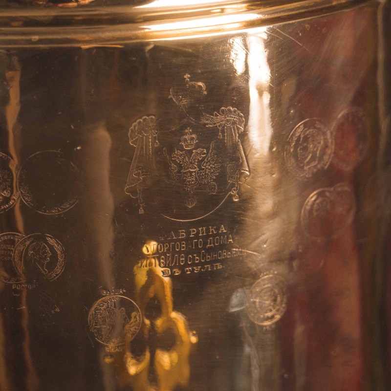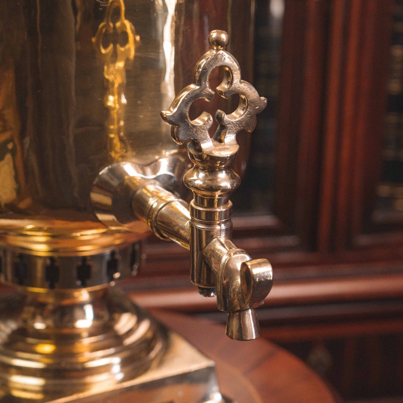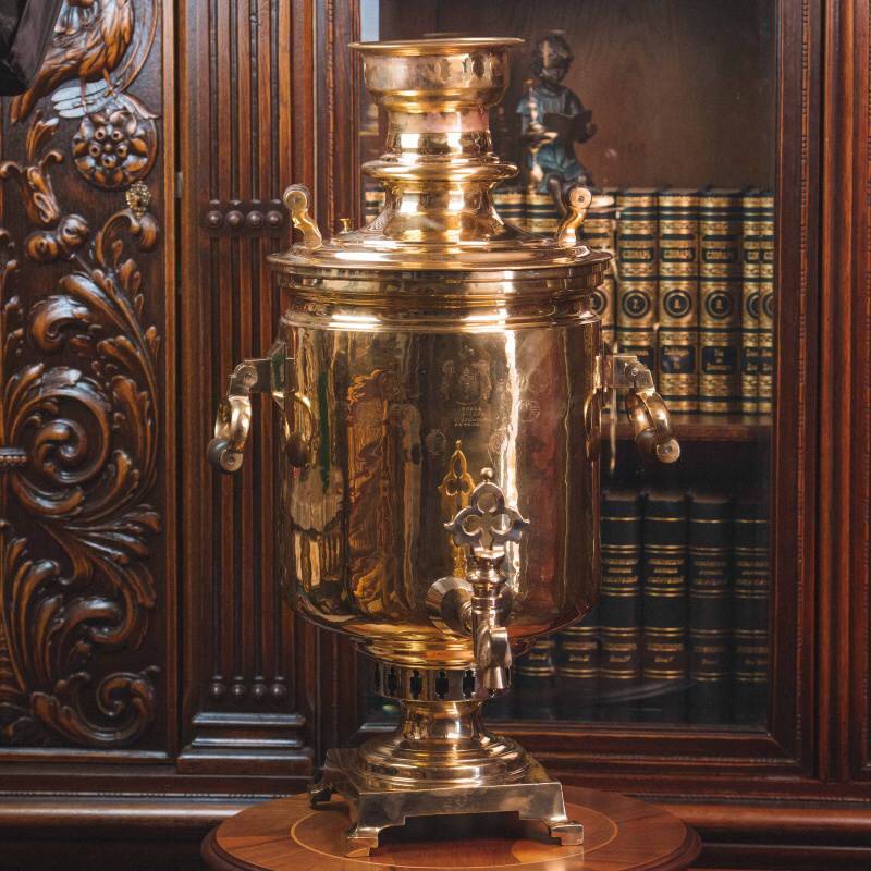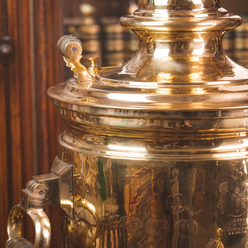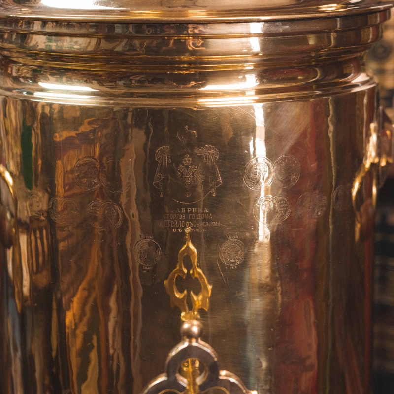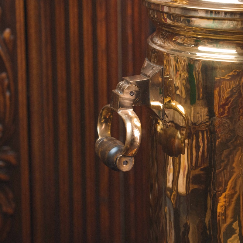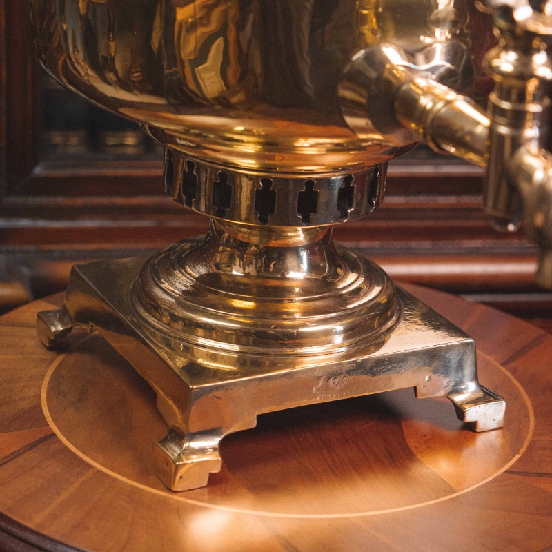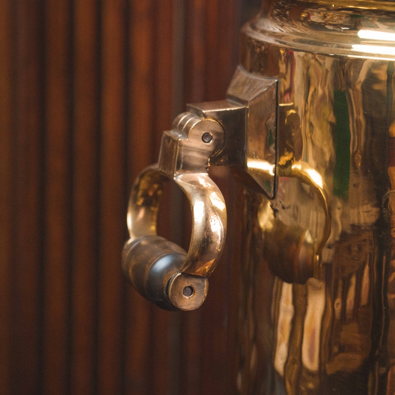 Материал Самовар изготовлен из полированной латуни.
