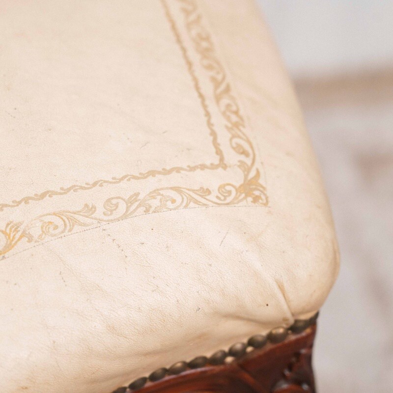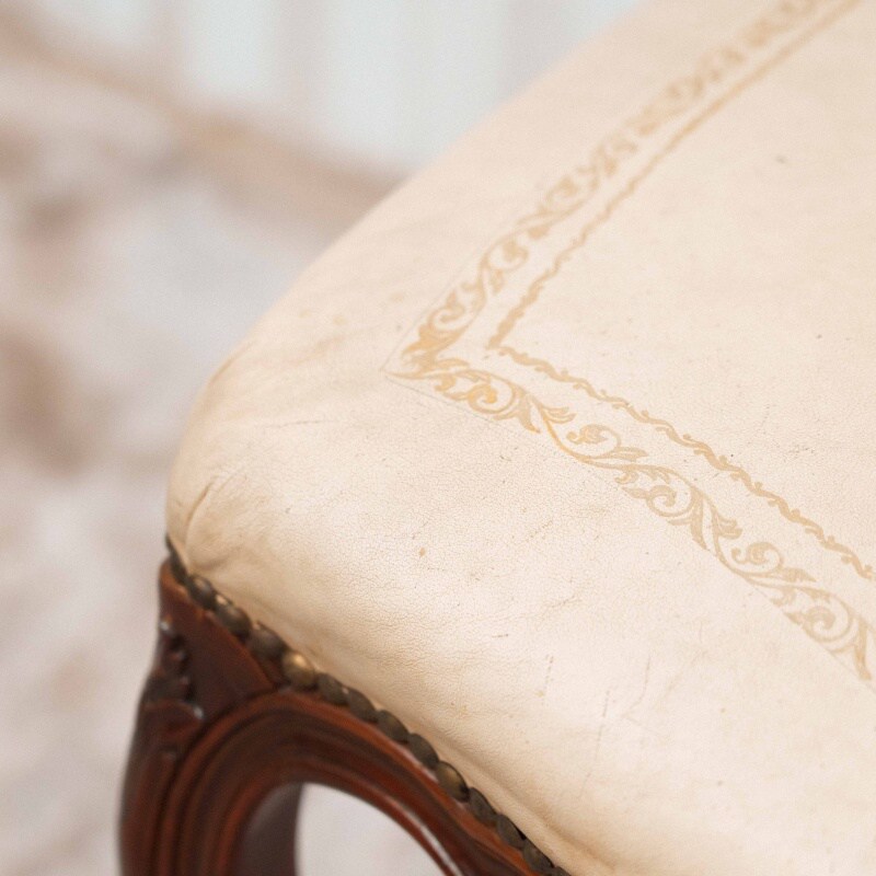 Изогнутые ножки и плавные линии каркаса отражают эстетику конца XIX – начала XX века, характерную для мебели в стиле рококо или позднего классицизма.
