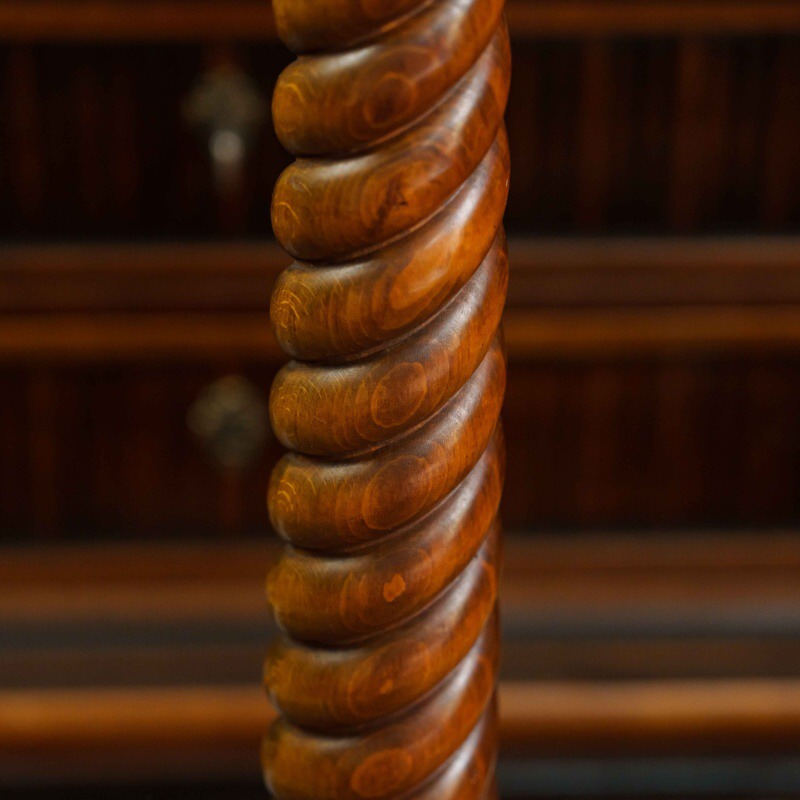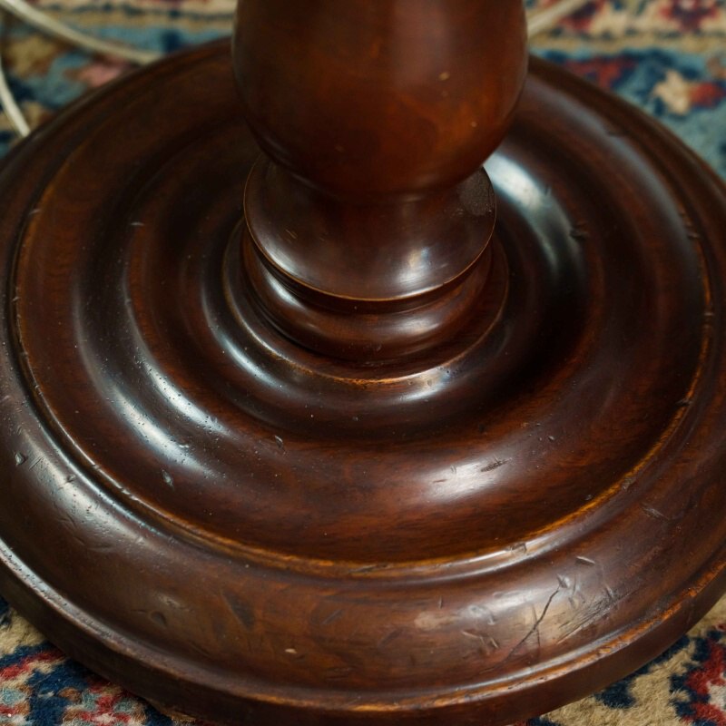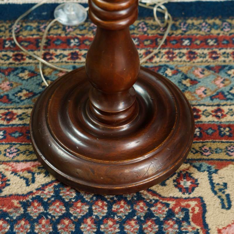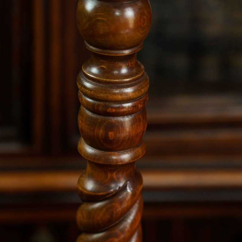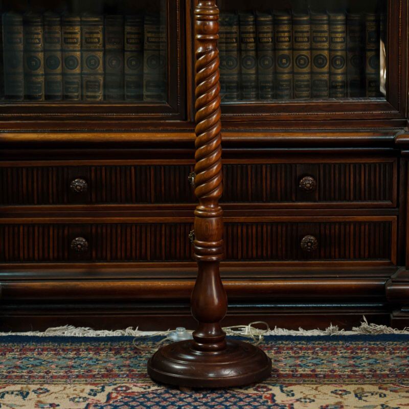 Торшер «Ренессанс» — изысканный пример классического европейского дизайна, сочетающий элегантность и декоративную выразительность. Центральной частью конструкции является резной деревянный штатив с винтовой колонной, выполненный вручную и покрытый тёплым лаком, подчеркивающим текстуру натурального дерева. Основание массивное и устойчивое, что обеспечивает надёжность конструкции.