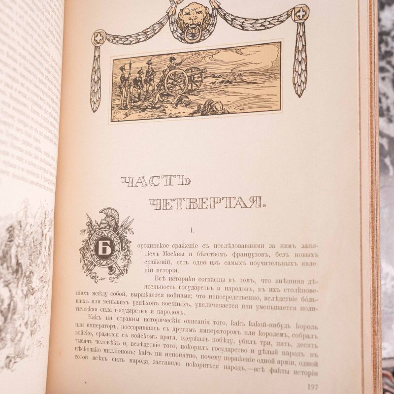 Юбилейное издание романа-эпопеи Л.Н. Толстого «Война и мир», выпущенное в 1912 году товариществом И. Д. Сытина к 100-летию Отечественной войны 1812 года, является уникальным, высокохудожественным дореволюционным трехтомником. Оно примечательно богатым оформлением с иллюстрациями А.П. Апсита, считается классическим и ценным подарочным экземпляром. Это было первое и единственное иллюстрированное издание романа до 1917 года, призванное стать самым парадным, что делает его крайне редким антикварным объектом.