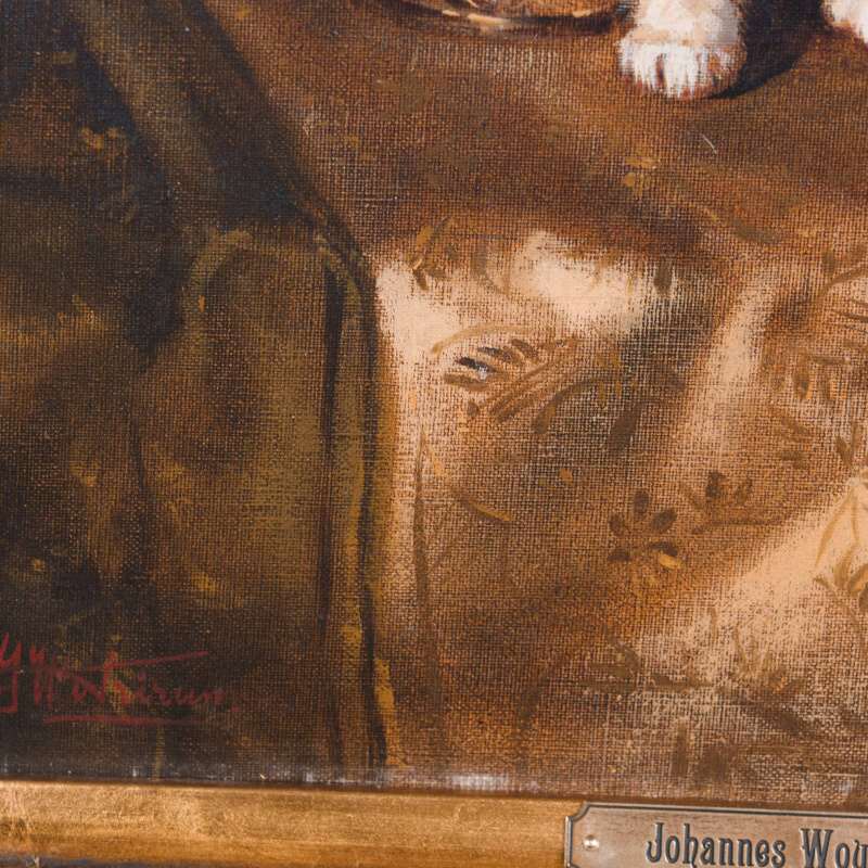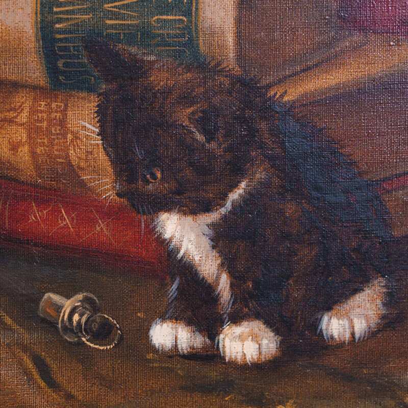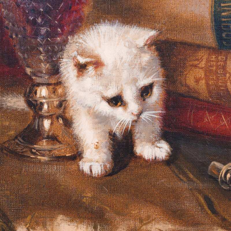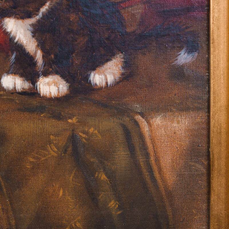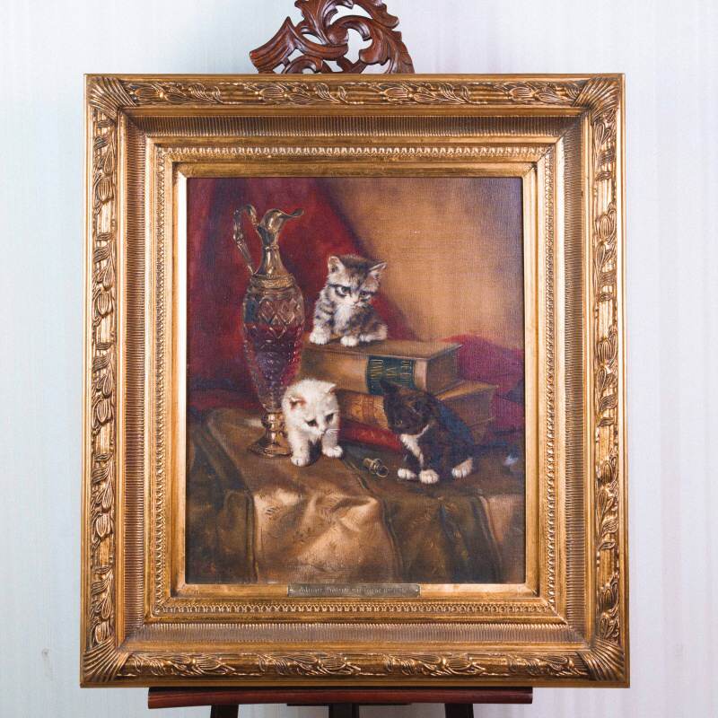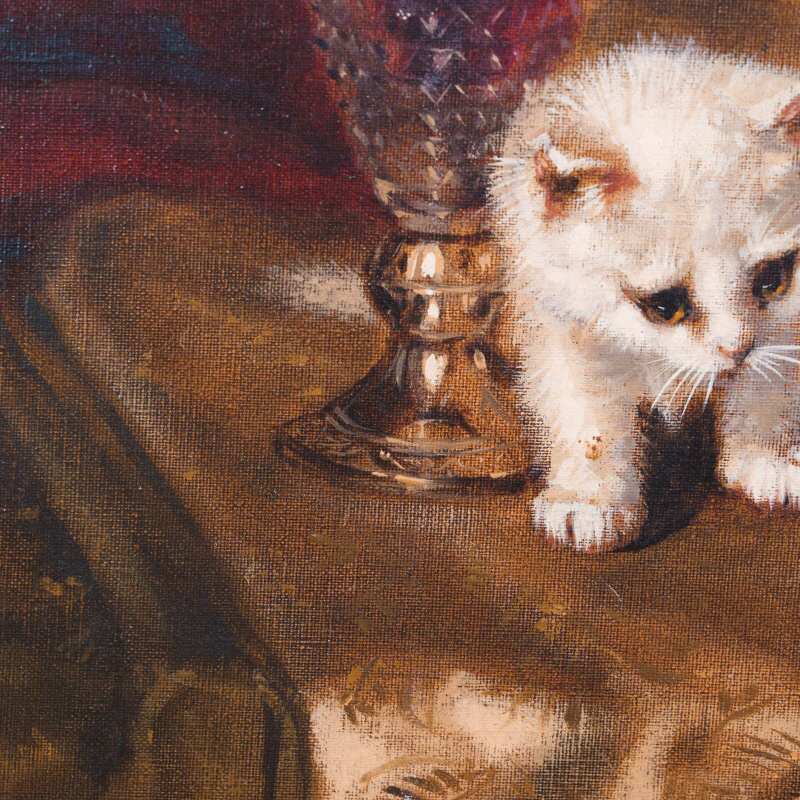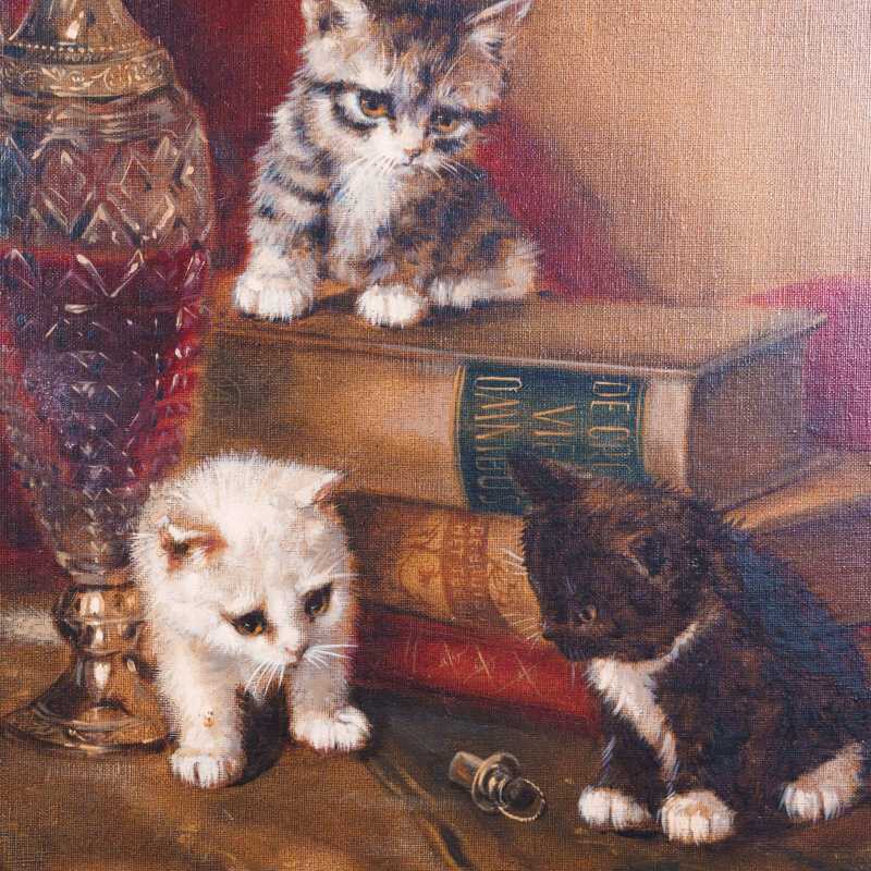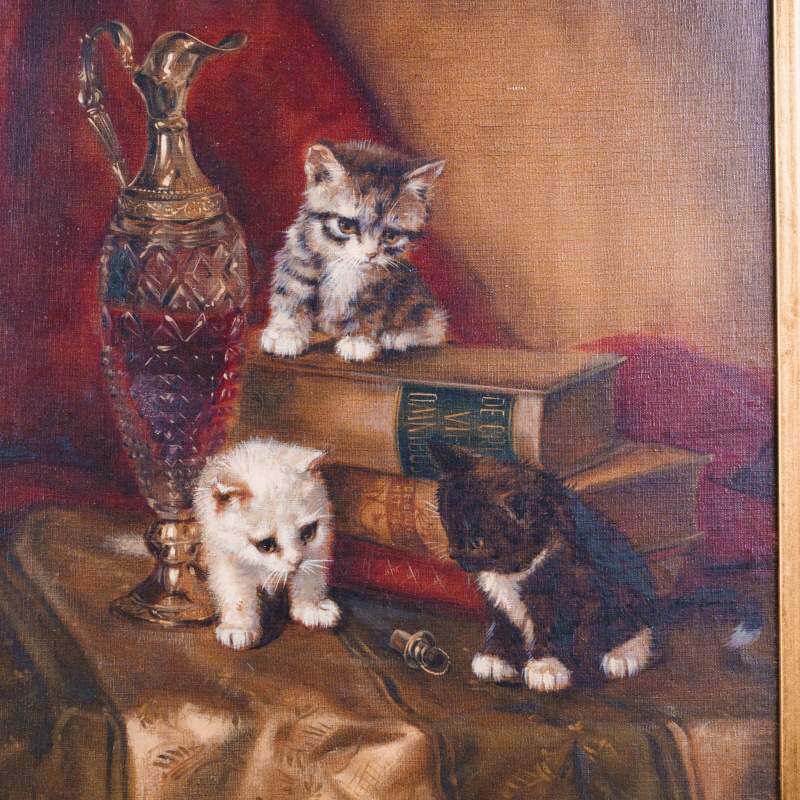 Представлена картина с условным названием «Три котенка» известного голландского художника Johannes Wouterus van Trirum. Авторская подпись, подтверждающая подлинность картины, находится внизу справа.