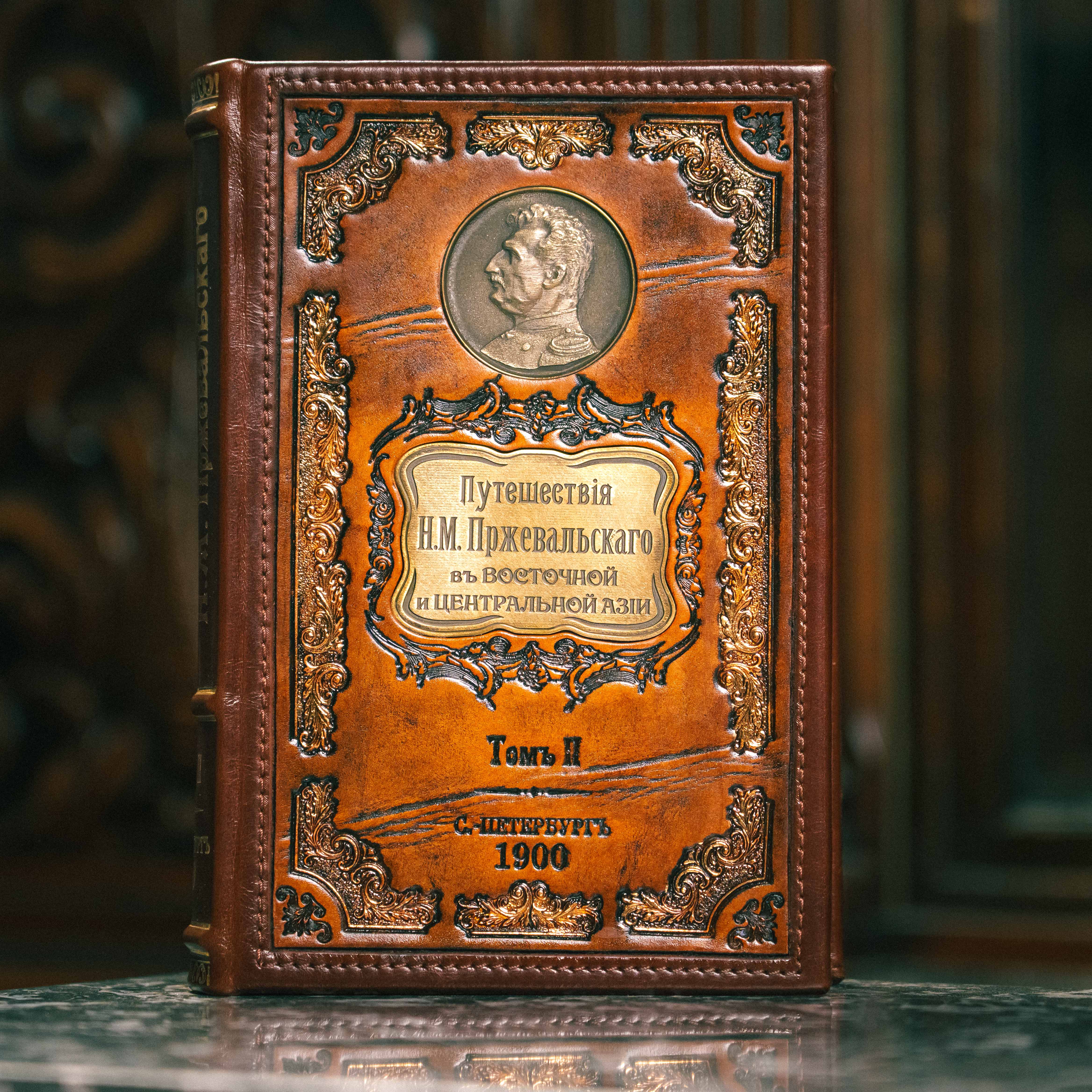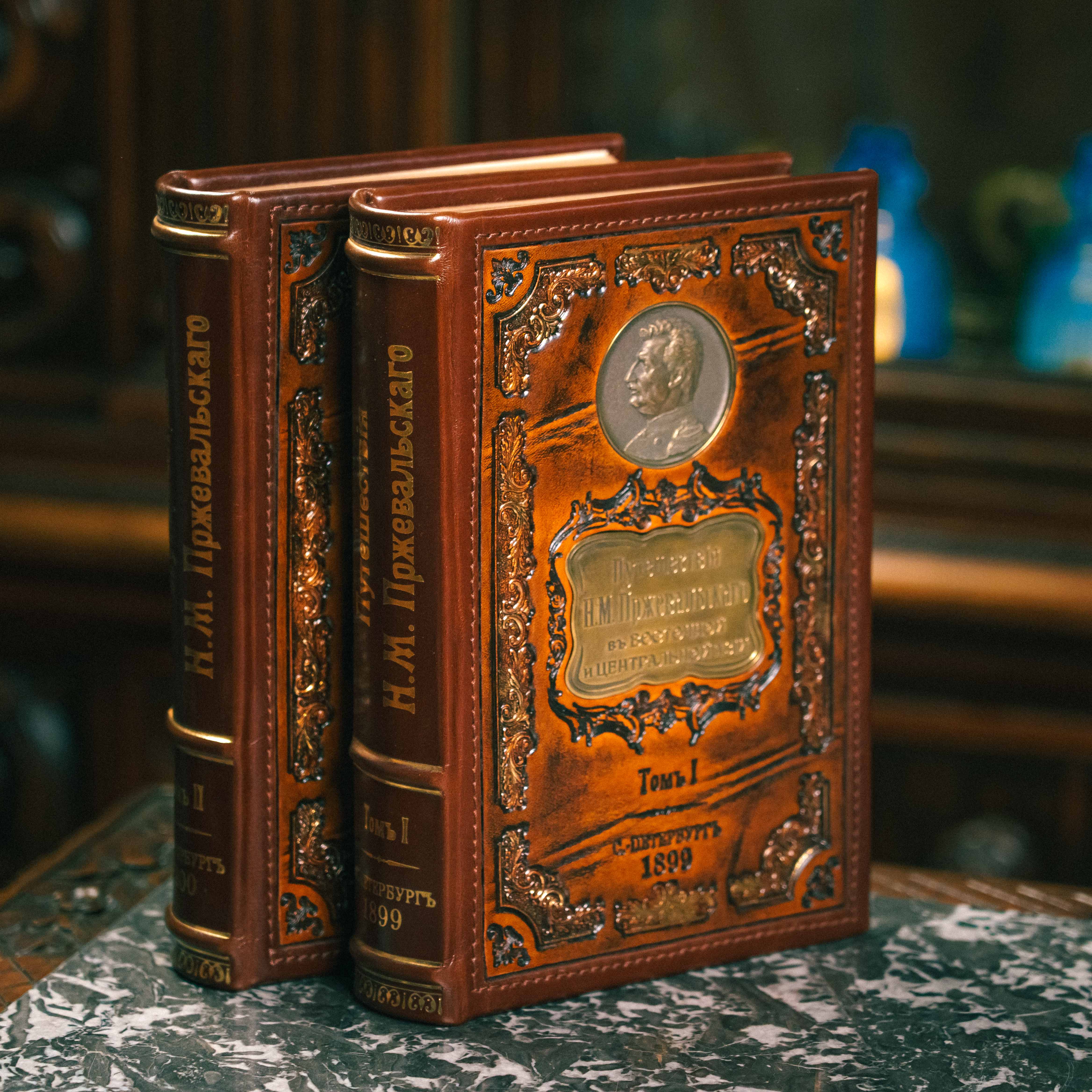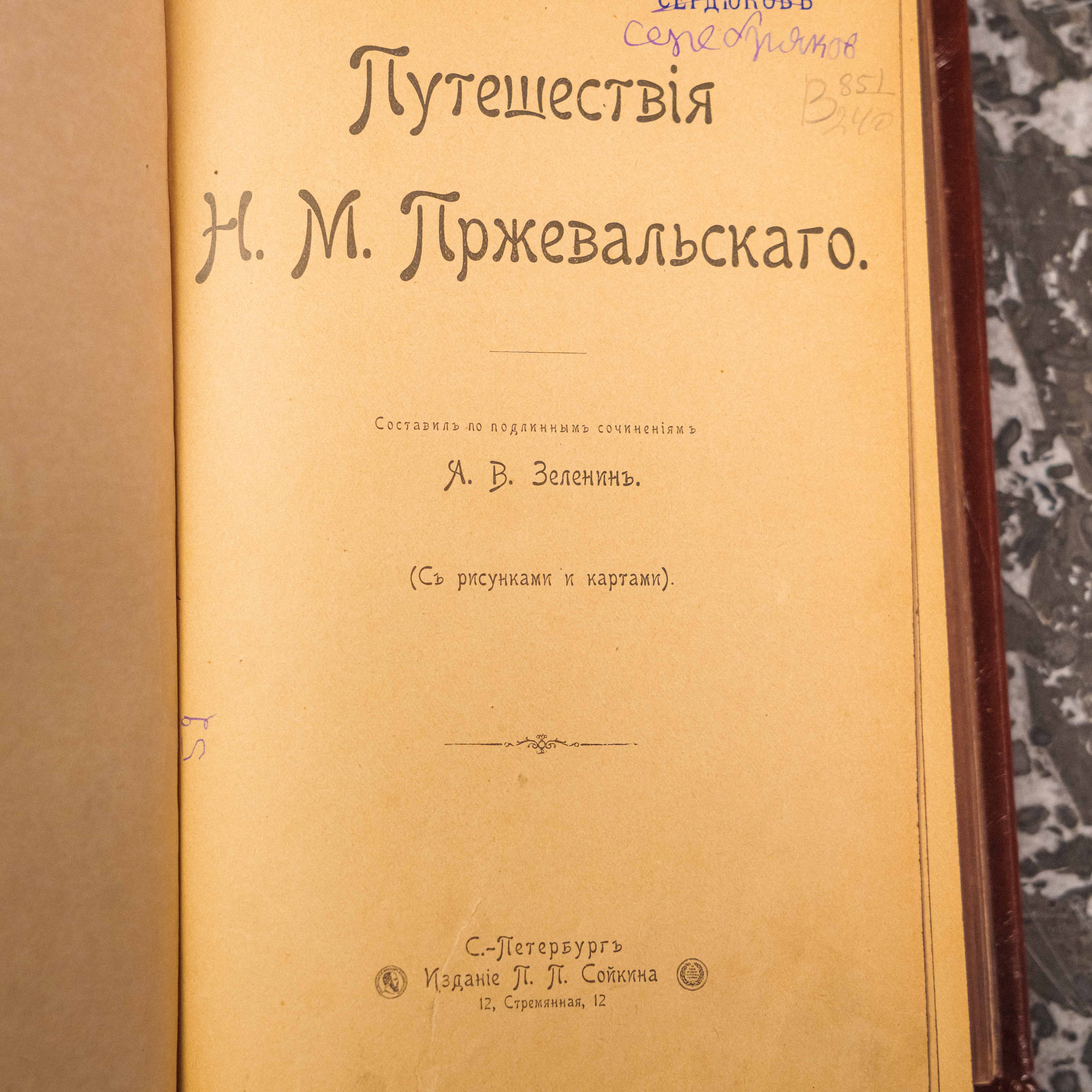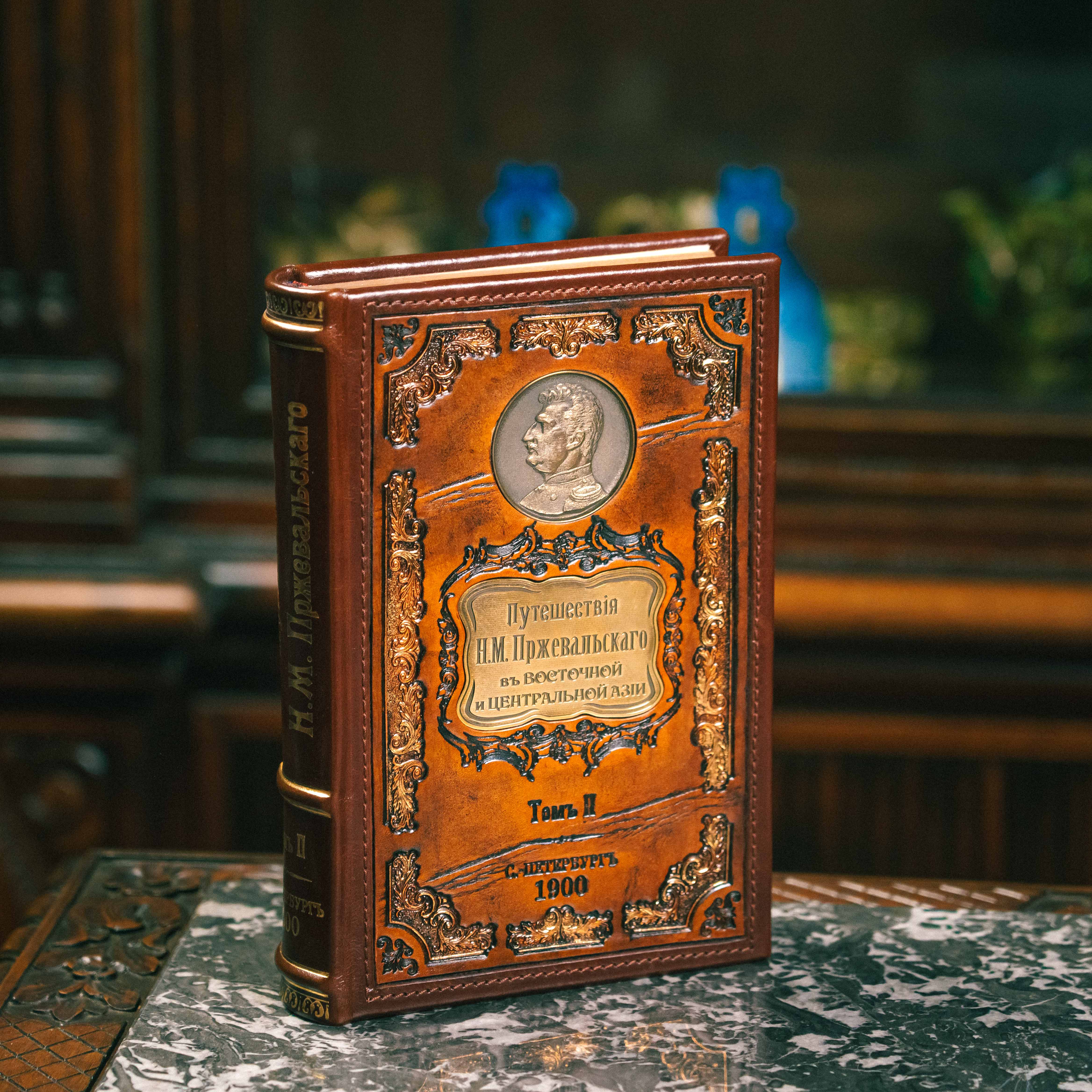 Книга «Всемирный Путешественник. Путешествия Н.М. Пржевальского» в двух томах, составленная по подлинным сочинениям, А.В. Зелениным, выпущена в Санкт-Петербурге изданием П.П. Сойкина в 1899 — 1900 годах. Труд содержит иллюстрации и карты. Текст книги напечатан в кириллице, в дореформенной графике конца XIX в., на русском языке. Издание в подарочных кожаных переплетах с рельефным и золоченым тиснением. Название книги указано в медальоне на крышке переплета, датировка и место издания указаны методом тиснение на крышке переплета и на корешке.
