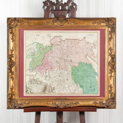 Ваза для середины стола выполненная на всемирно известной итальянской мануфактуре ALFA CERAMICHE в середине ХХ века. Декоративное оформление представлено цветочной композицией на благородном изумрудном фоне. Также предмет дополнен бронзовыми элементами в виде навершия на крышке, узорными боковыми ручками и ажурной окантовкой.