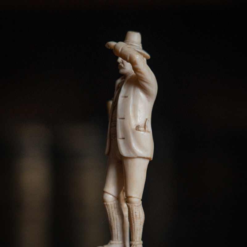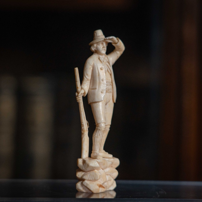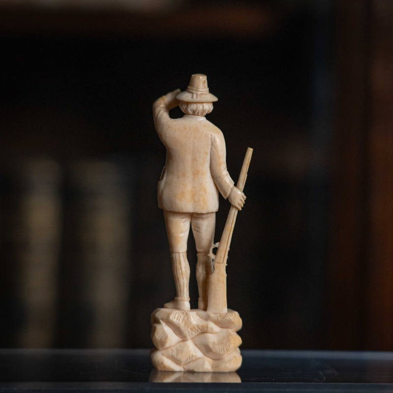 Фигура изображает мужчину в костюме XVIII–XIX веков, с ружьем, который смотрит вдаль, приложив руку к козырьку шляпы.