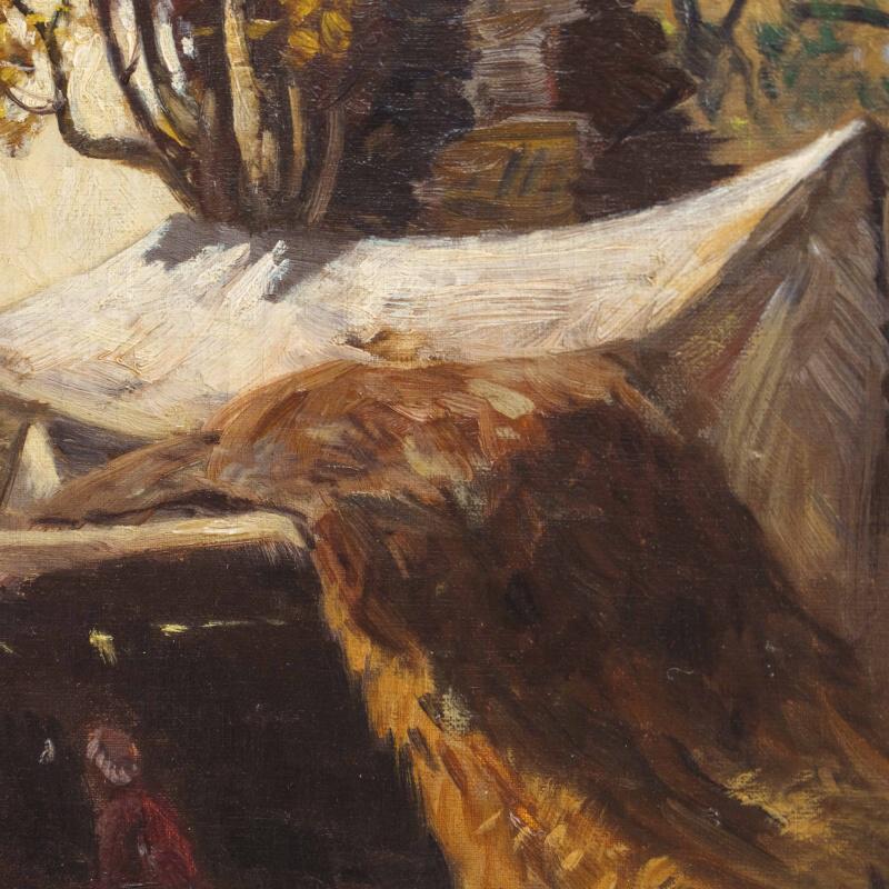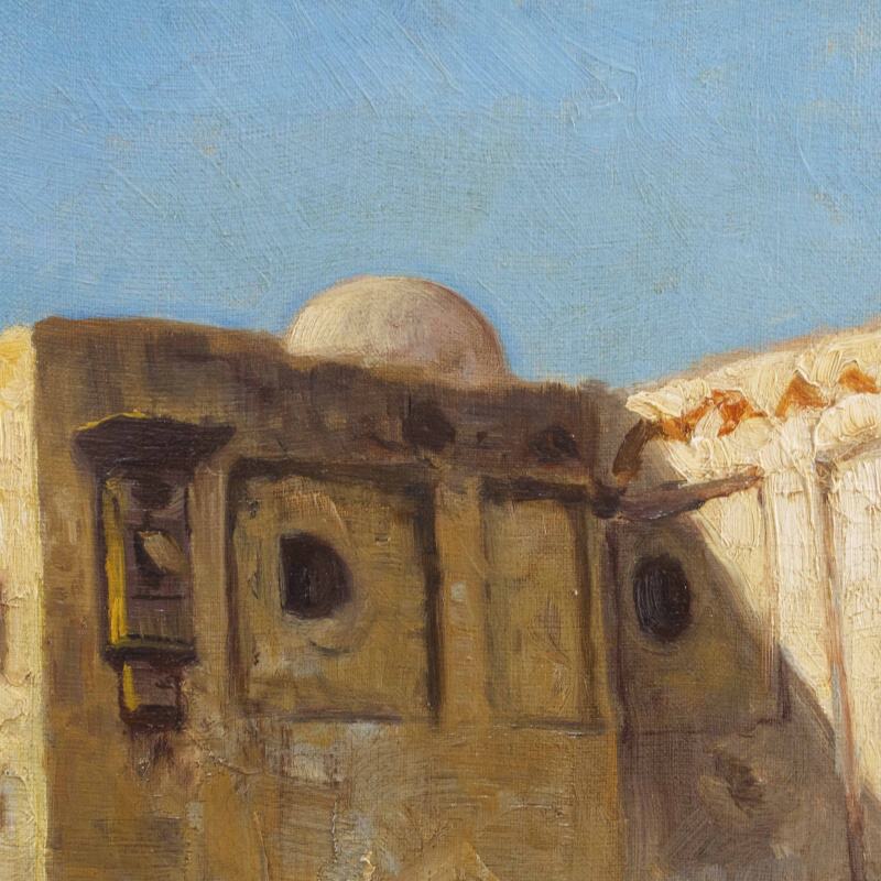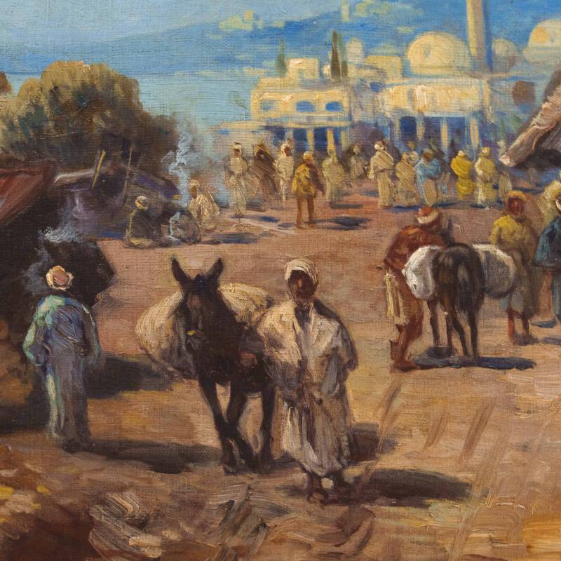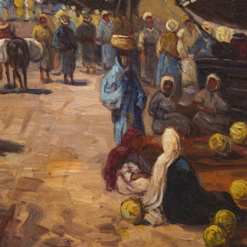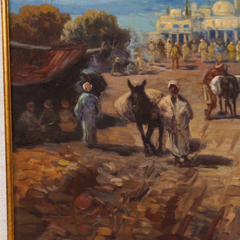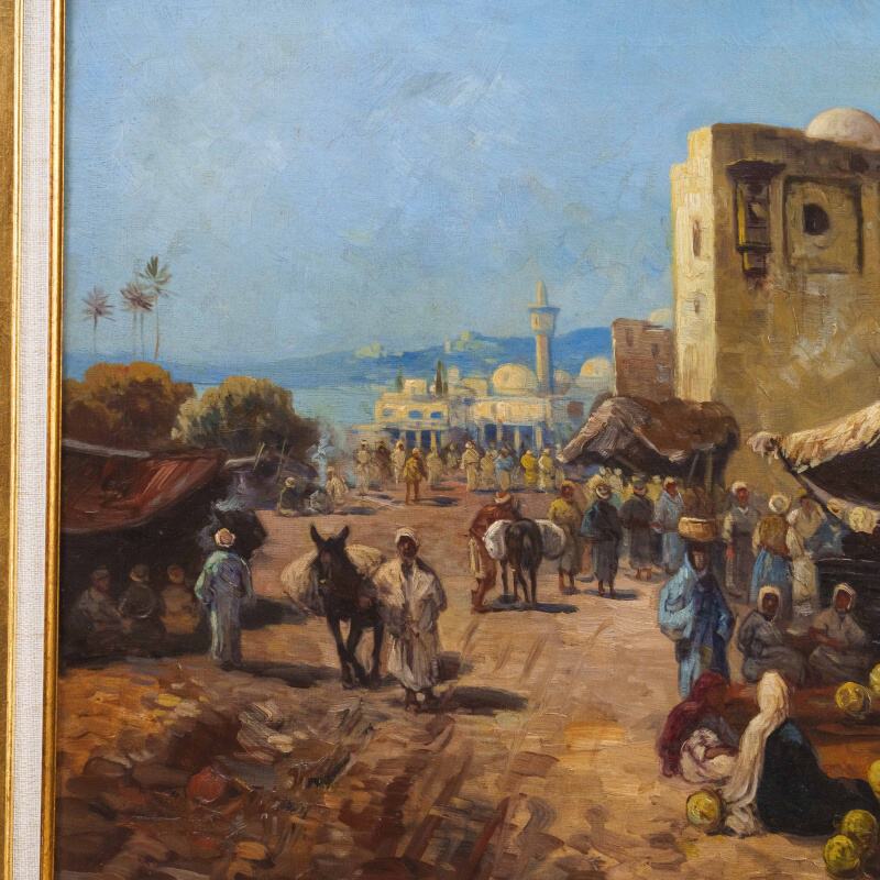 Представлено живописное произведение с условным названием «Восточный базар» известного австрийского художника Karl Kaufmann. Авторская подпись K. Schwarz( один из самых известных официальных псевдонимов художника Карла Кауфманна), подтверждающая подлинность картины, находится в правом нижнем углу.