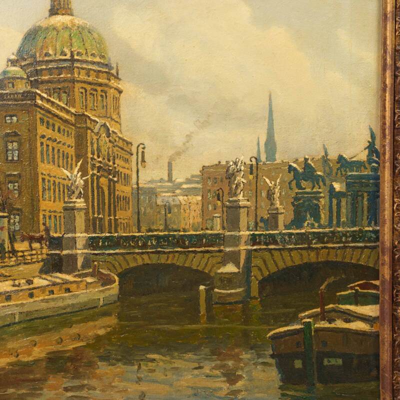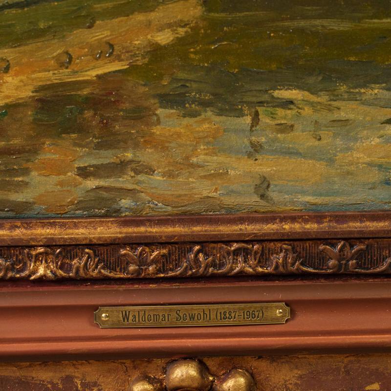 Представлен великолепный пейзаж с условным названием «Замок в Берлине» известного немецкого художника Waldemar Sewohl. Подпись автора, подтверждающая подлинность данной картины, находится в правом нижнем углу. Waldemar Sewohl родился в 1887 году в городе Висмар, Германия. Он переехал в Берлин и там получил великолепное художественное образование у Вильгельма Бланке.