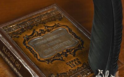 Книга в эксклюзивном переплете, с оригинальной старинной монетой из серебра.