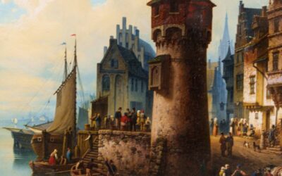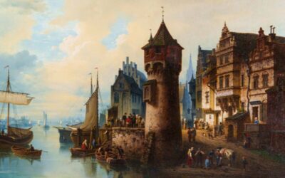 «Вид портового города / Ansicht einer Hafenstadt»