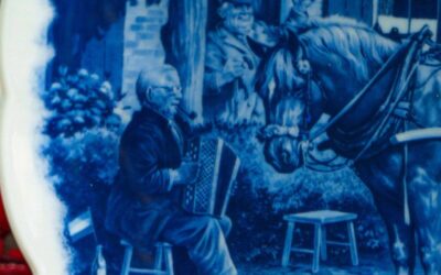 Винтажная декоративная тарелка, выполненная в традициях голландского дельфтского фаянса