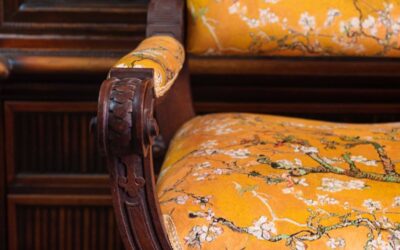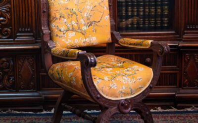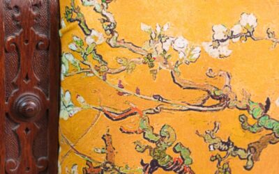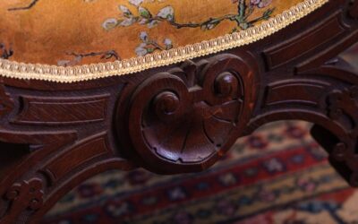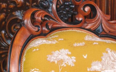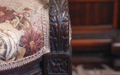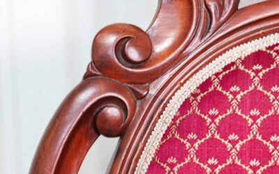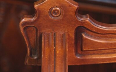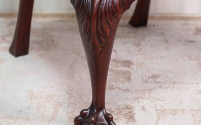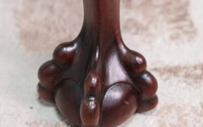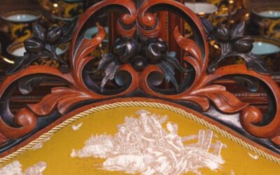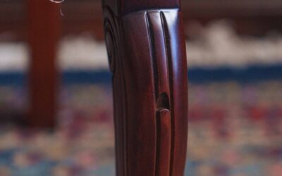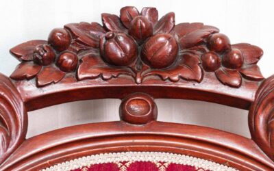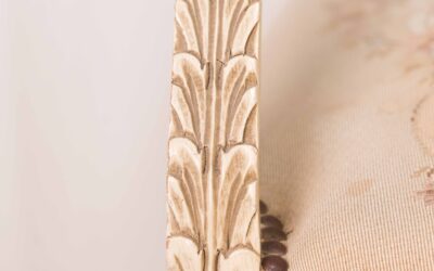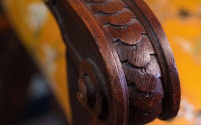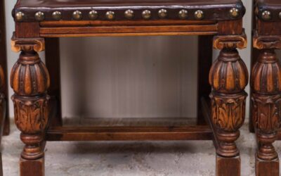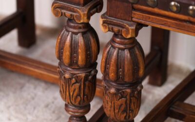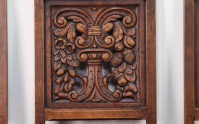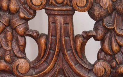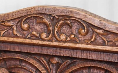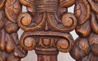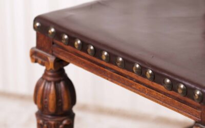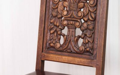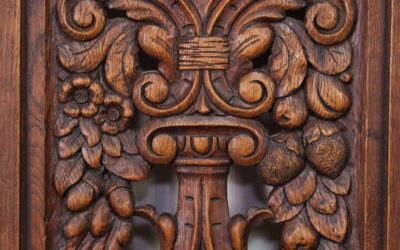 Дерево, ручная резьба, натуральная кожа с тиснением.