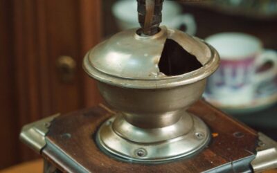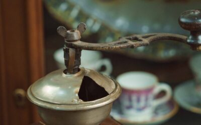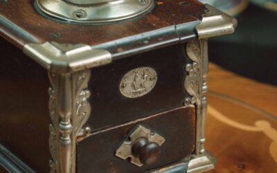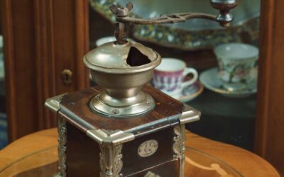 Редкая кофемолка в стиле раннего модерна с металлическим декором