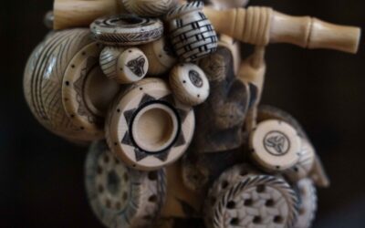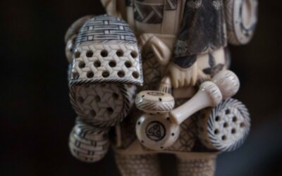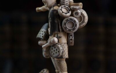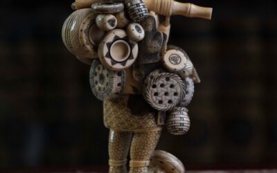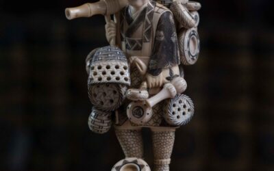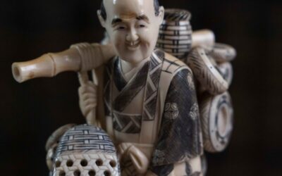 Окимоно «Торговец корзинами и барабанами — Гё сё». Символ удачной торговли