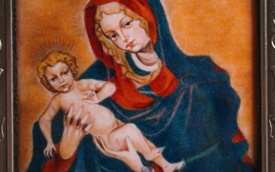 Бокал-вазон из красного стекла с золотым декором и камеей