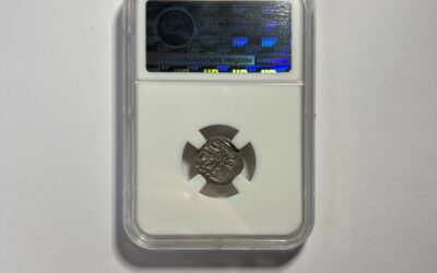 Книга в эксклюзивном переплете, с оригинальной старинной монетой из серебра.