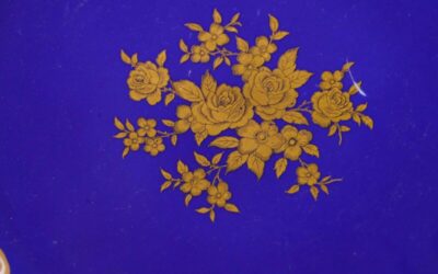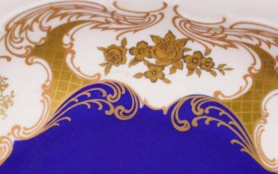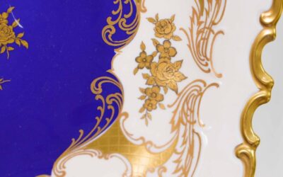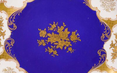 Декоративная тарелка с кобальтовым зеркалом и золочёным орнаментом
