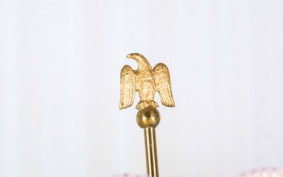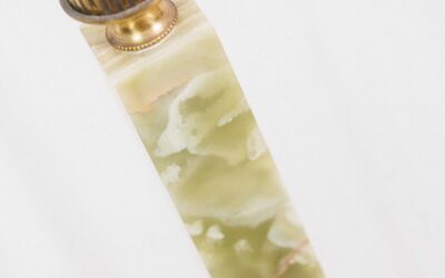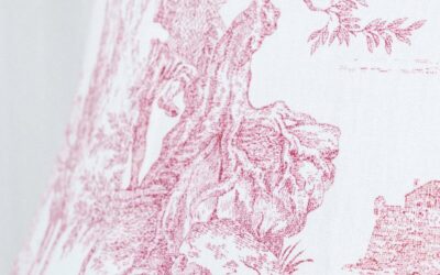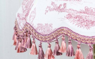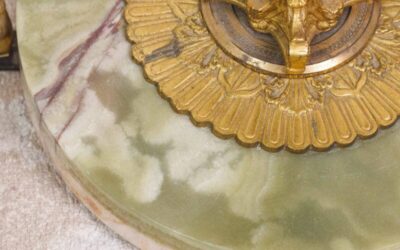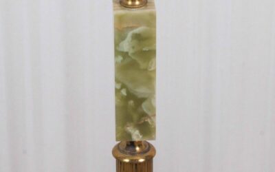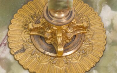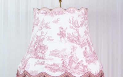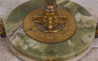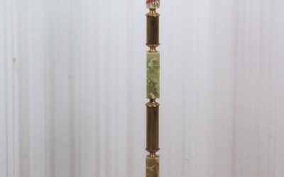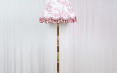 Антикварный торшер с мраморным основанием и розовым тканевым абажуром
