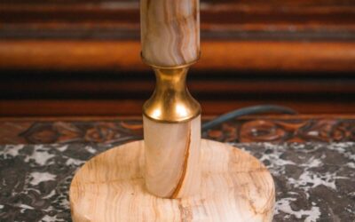 Винтажная настольная лампа с резным мраморным основанием