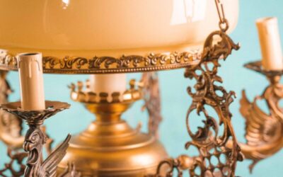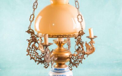 Подвесная люстра с фарфором и бронзовым декором