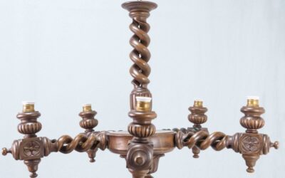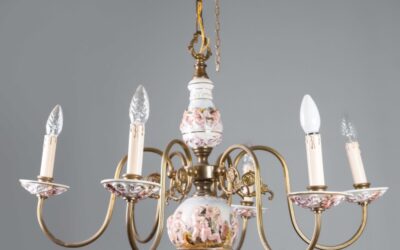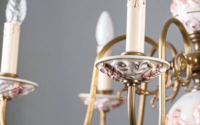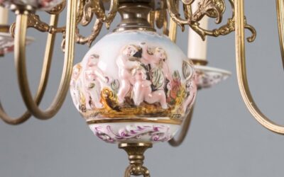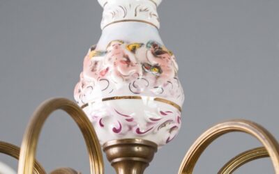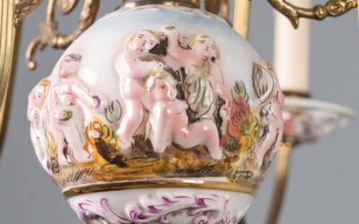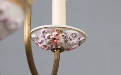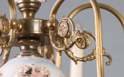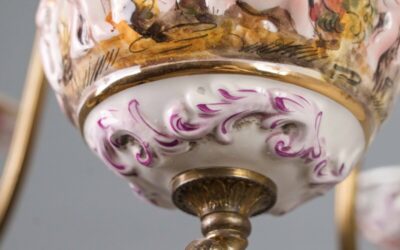 Антикварная люстра из фарфора и бронзы с живописными деталями