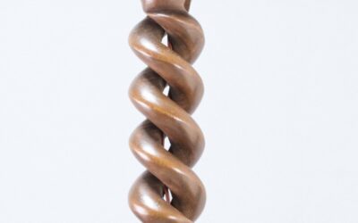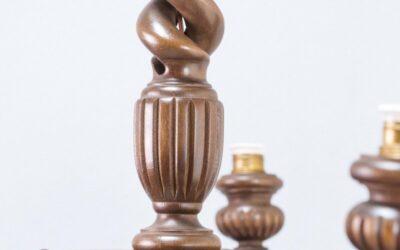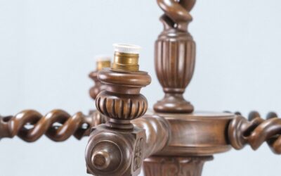 Антикварный торшер с мраморным основанием и розовым тканевым абажуром