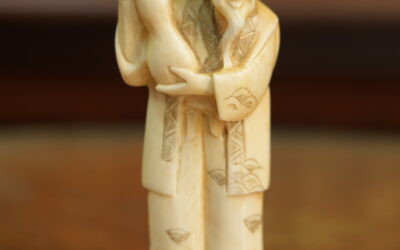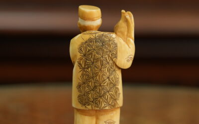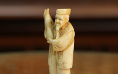 Окимоно «Торговец корзинами и барабанами — Гё сё». Символ удачной торговли