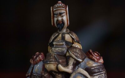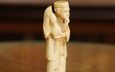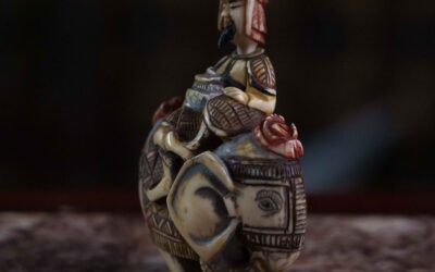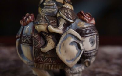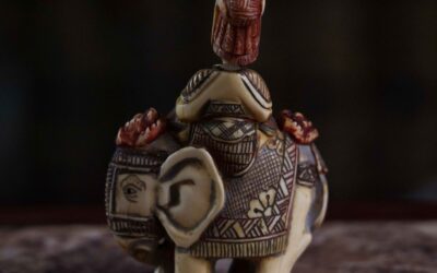 Антикварное окимоно в виде флакона «Бисямонтэн на слоне» — Защитник дома и добра, символ могущества и мудрости