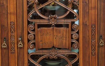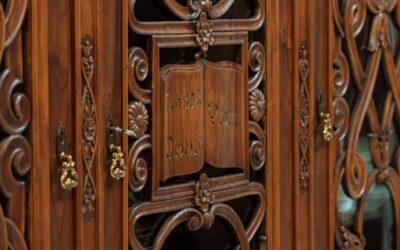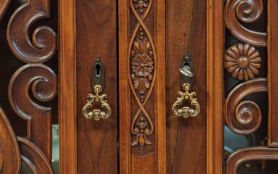 Дерево, ручная резьба, инкрустация натуральными камнями, костью.