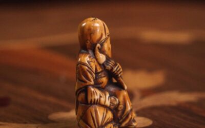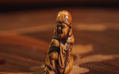 Нэцкэ «Дзюродзин на мешке Хотея». Символ долголетия и процветания
