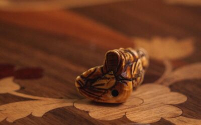 Окимоно «Японец с тыквой горлянкой, наливает сакэ». Символ мудрости и благополучия
